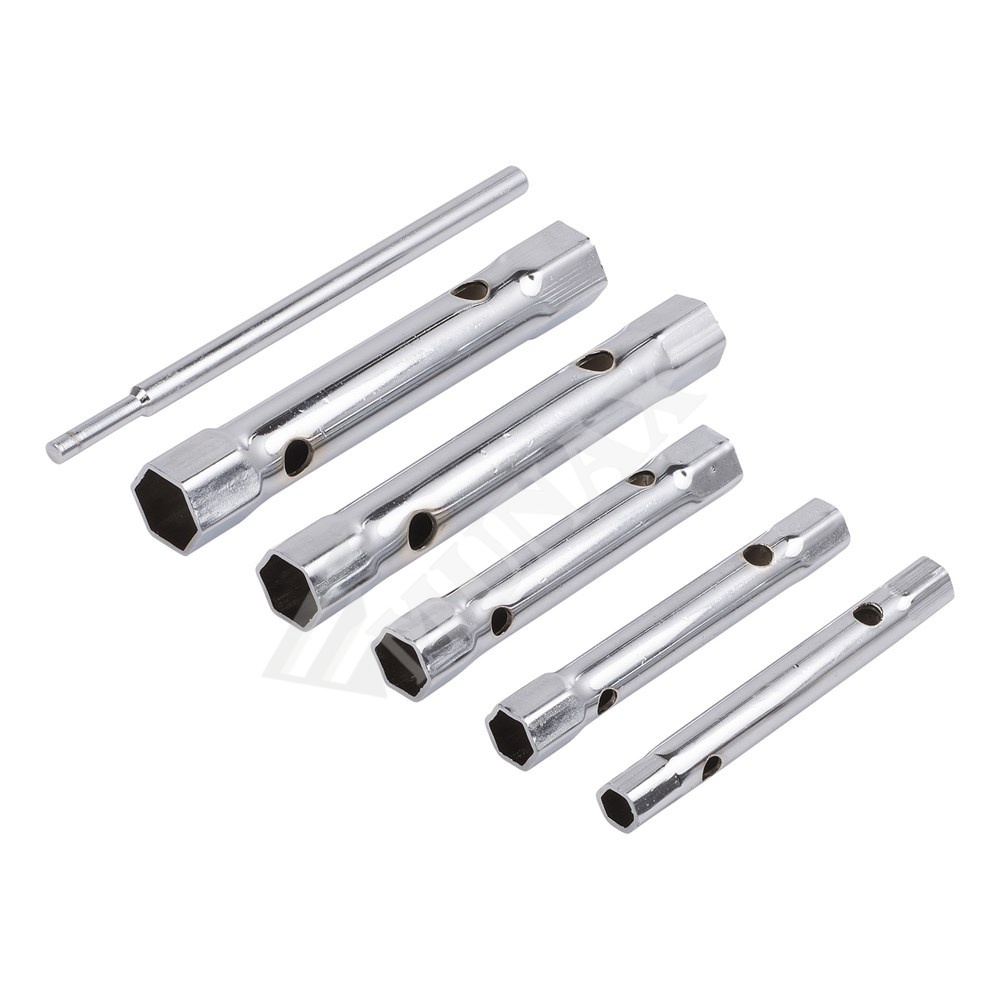 Conţinut: 6 chei fixe cu capete duble, dimensiuni standard: 8×9 mm, 10×11 mm, 12×13 mm, 14×15 mm, 17×19 mm.